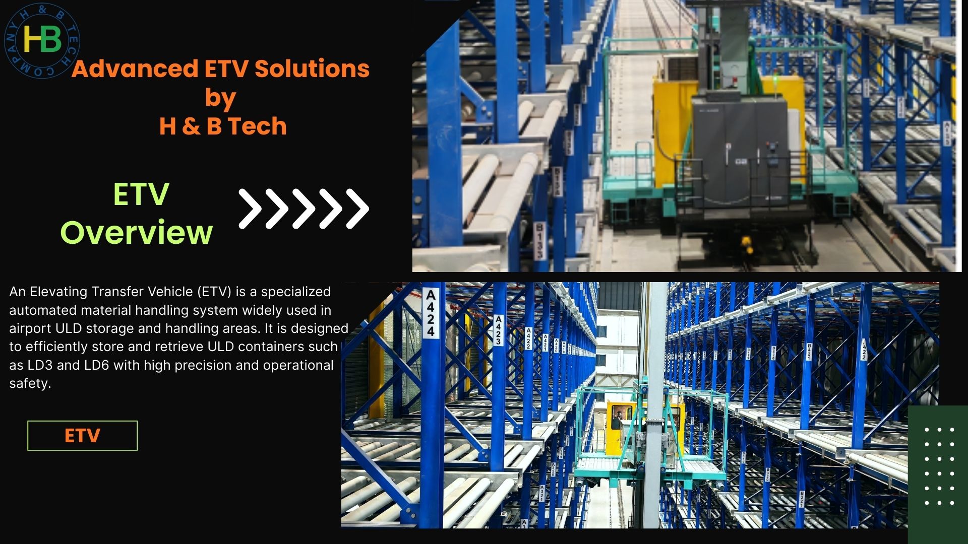 Elevating Transfer Vehicle & Stacker Crane Automated vehicles moving goods vertically with precision and safety.
